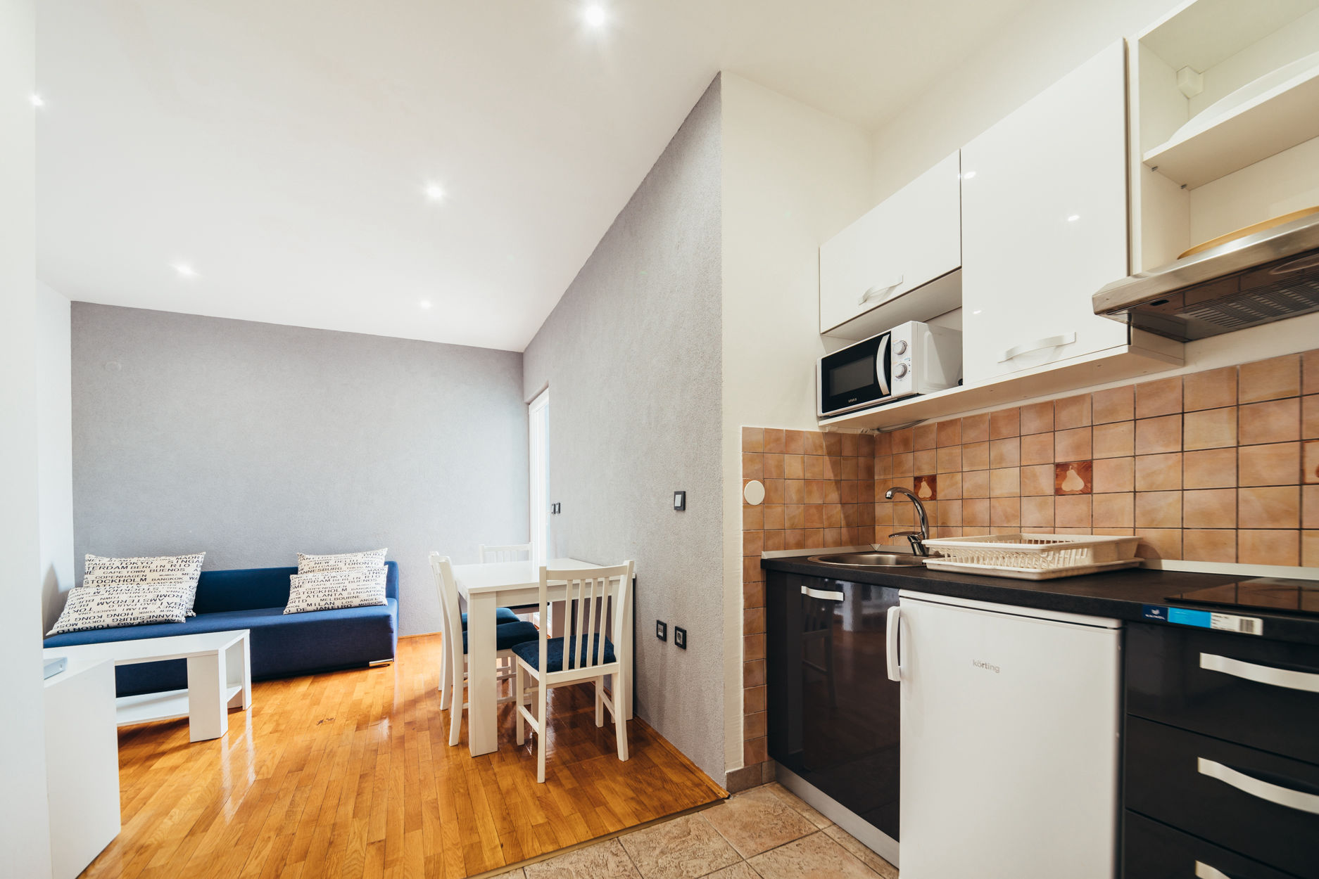 The 38 m² apartment has its own kitchenette, bathroom and balcony with a wonderful view of the sea, Vela Luka and the islet of Ošjak. The balcony is ideal for enjoying coffee or a glass of top-notch wine with the sound of the sea and the music of crickets. The apartment is air-conditioned, and equipped with a TV and WiFi.