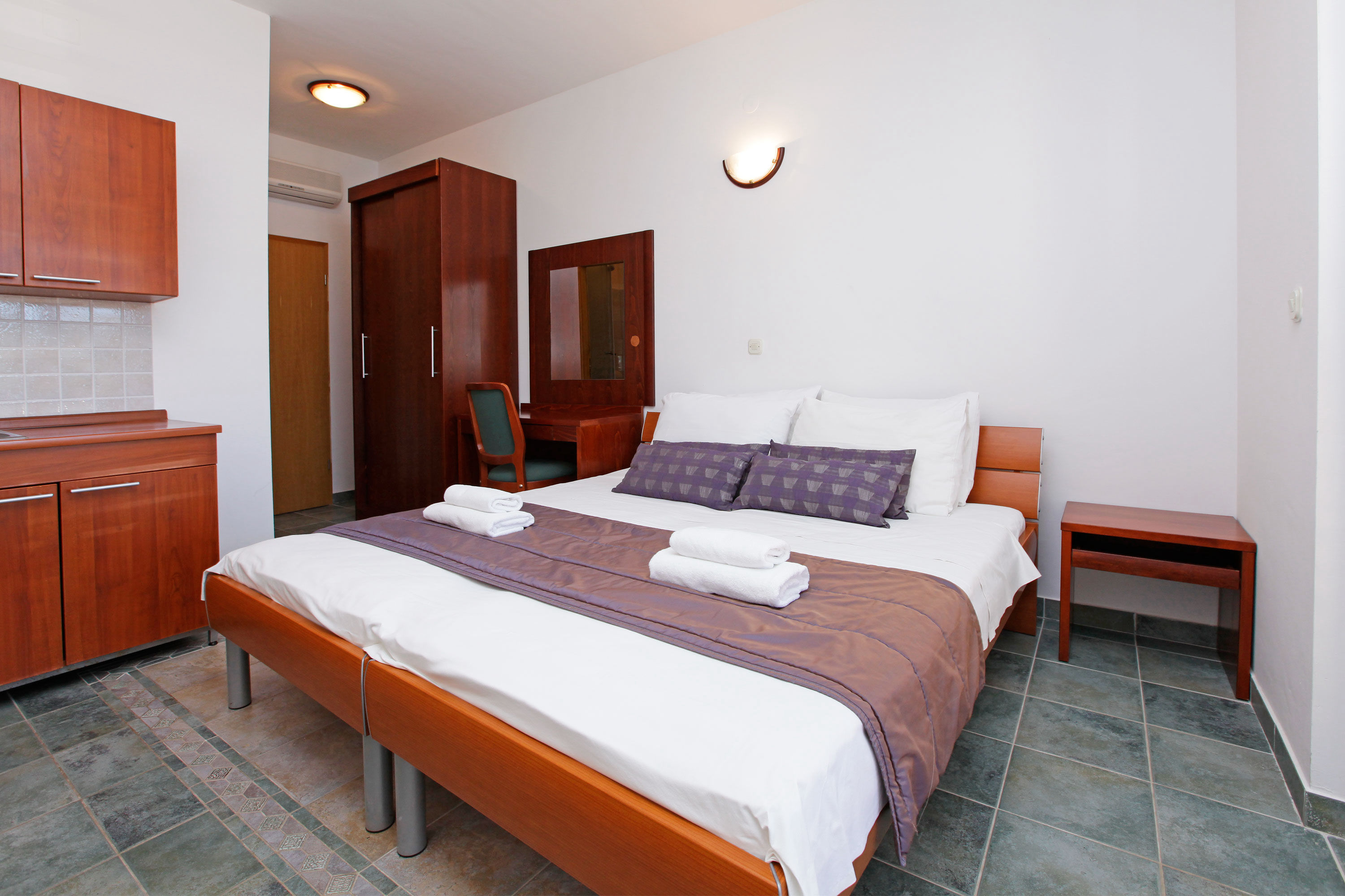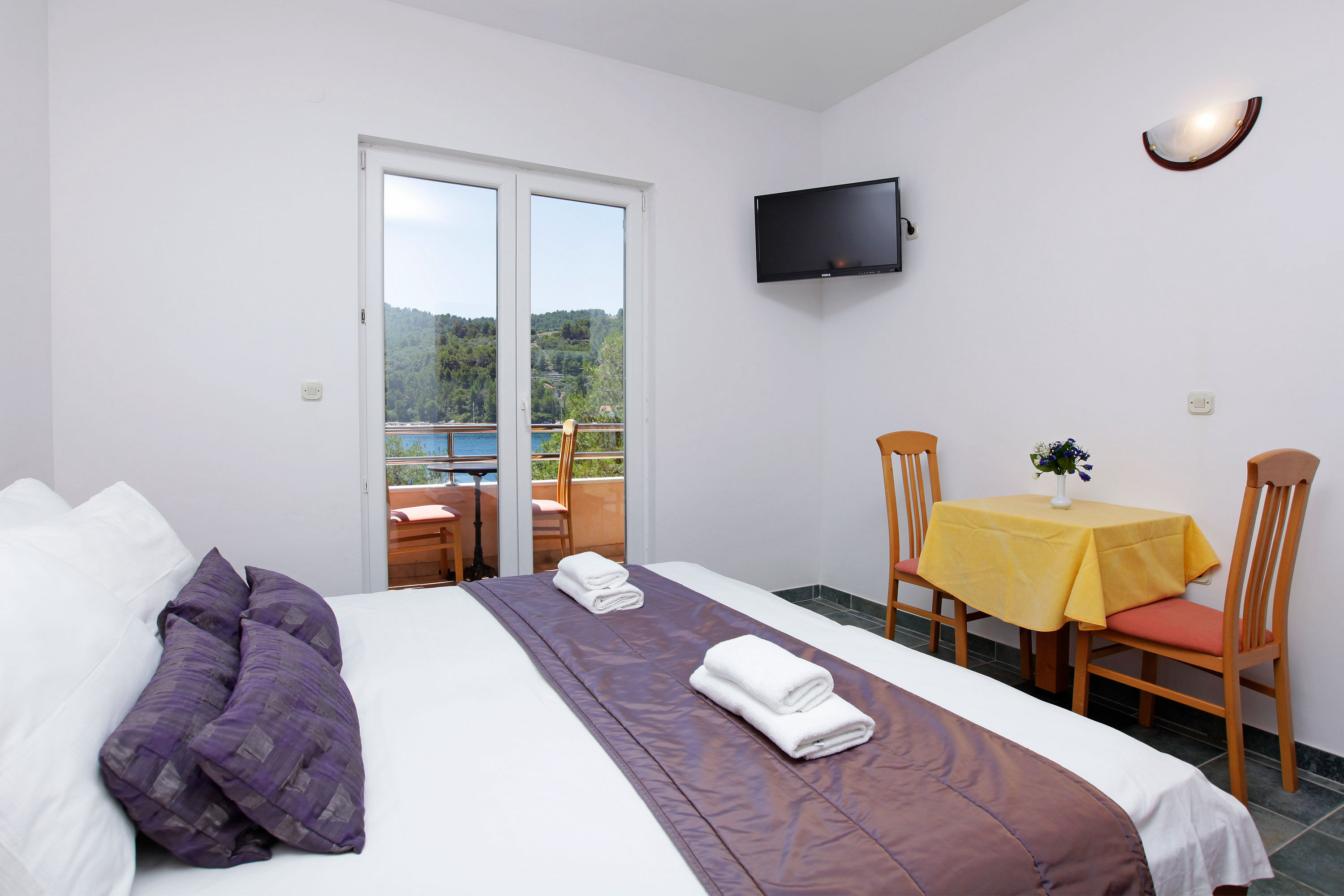 The studio apartment is 20 m² in size, and has its own kitchenette, a bathroom, and a balcony with a beautiful view. It is ideal for relaxing far from the hectic pace of life with the sound of the sea and the music of crickets. The apartment is air-conditioned,and equipped with a TV and WiFi.